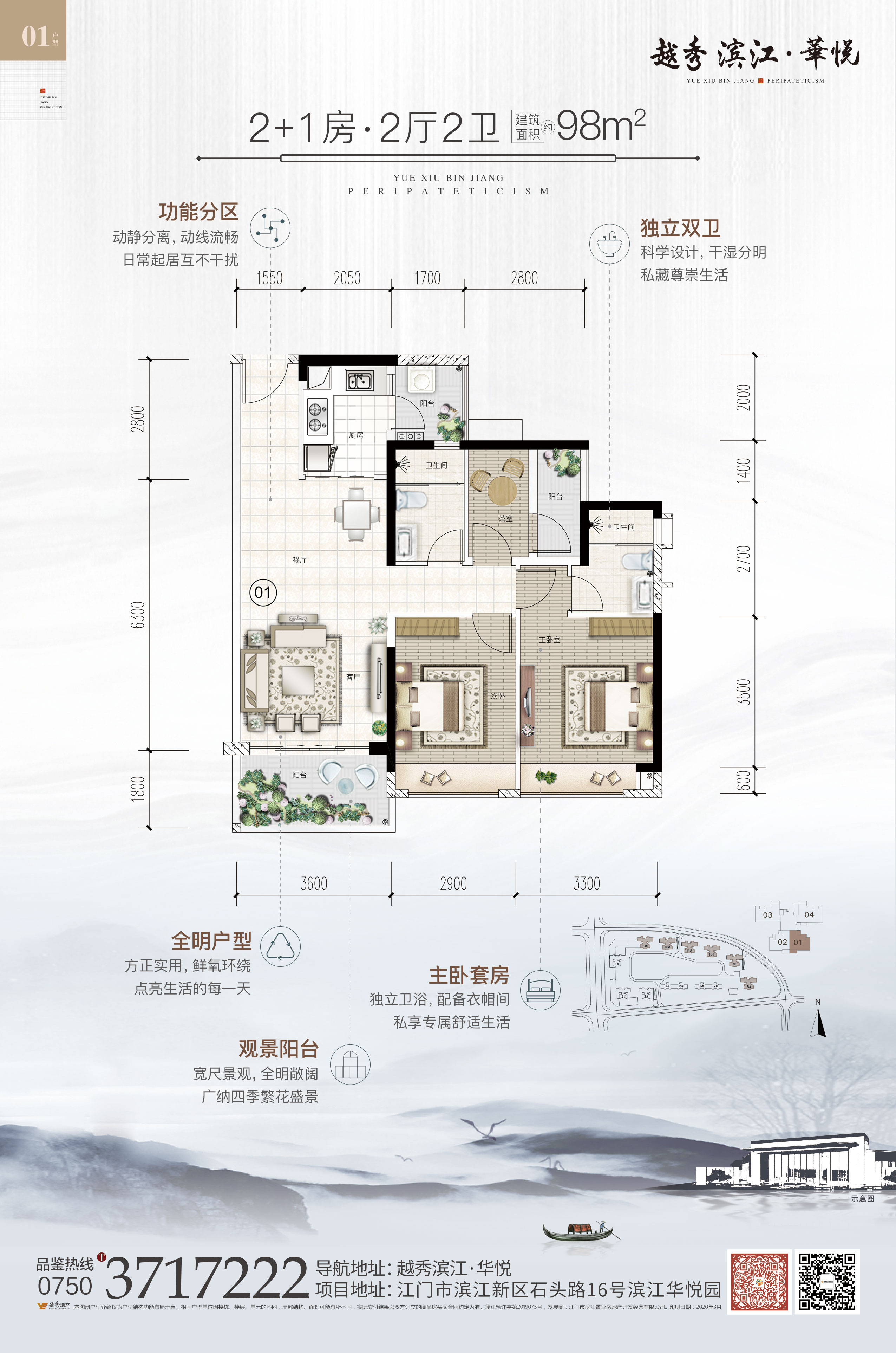全新双景楼王98-130㎡三至五房 南赏园林 北揽河境 约百米超宽楼距 高层可瞰龙舟山 滨江新区唯一130㎡五房户型
