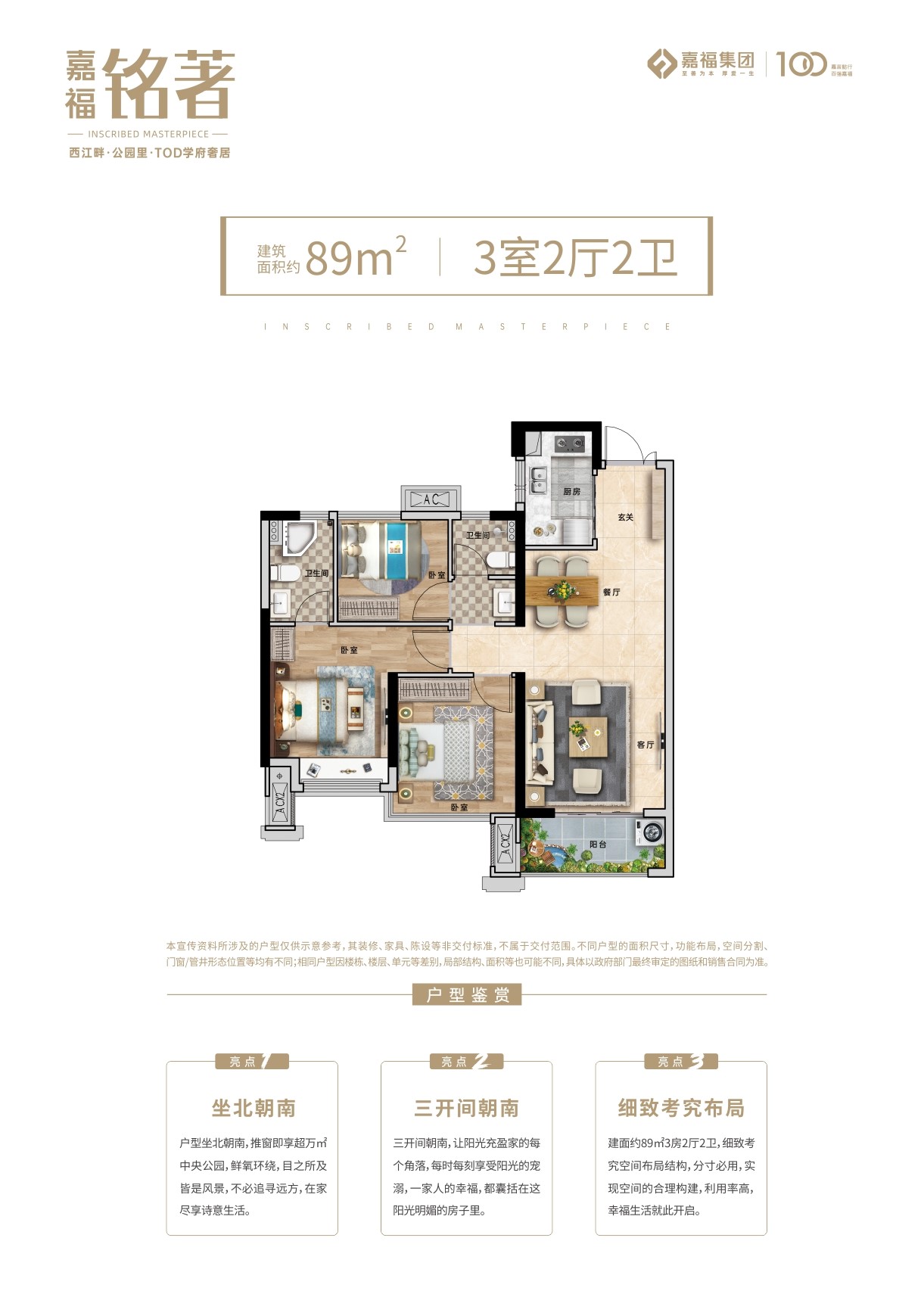 百亿配套 一站式繁华精粹 项目周边荟萃一城丰盛配套,满足业主吃喝玩乐购等一站式生活所需。 景观:西江及西江湿地公园、自带健康艺术公园及约10000㎡中央公园; 医疗:规划中江门市中心医院新院区(三甲医院),总占地173亩,总投资约33亿元,预计2024年建成; 学校:洛基山森林幼儿园、七东幼儿园、新苗幼儿园、外海中路小学、中港英文学校、外海中心小学、高新第一小学(小学规划中)、外海中学、陈伯坛实验学校; 商圈:自带社区商业街、龙溪新城商业街、海逸星宸商业街、光博汇商圈。 百强嘉福 赋能城市美好 嘉福集团,全国百强房企,足迹遍及中国12余座重点城市。多年来,嘉福始终坚持品质筑城,潜心匠造四大产品系——城系、府系、中心系、合系,匠筑行业典范,落笔皆为区域标杆。今以其深厚巨匠修为,携集团产品系最高标准“府系”巨作——嘉福·铭著,初会江门,焕新城市人居理想。 TOD之上,焕新城市想象 放眼全球城市,TOD所在,必是区域新聚焦点所向。纽约曼哈顿新世贸中心、东京涩谷,TOD已经发展得颇为成熟,造就了一个个世界商圈。未来江海站之上也将打造TOD城轨综合体,一个全新的城市门户、片区中心、优质生活圈,即将落地。与江海站一路之隔的嘉福·铭著,一步尽享TOD都会生活,焕新一城人居向往。 多维交通 畅达湾区9城2区 项目位于江海区外海板块,紧邻湾区西翼特大型交通枢纽,畅达9城2区 高速:广佛江珠高速、珠三角环线高速、广中江高速,快速接驳深中通道,南沙大桥,虎门大桥; 枢纽:外海港澳码头,广珠城轨江海站,与广珠轻轨江海站近在咫尺,速链全国城轨,未来深茂高铁开通,快速接驳深圳、东莞 路网:外海大桥、五邑路、连海路、东升路等主干道,快速畅达中山、江门
